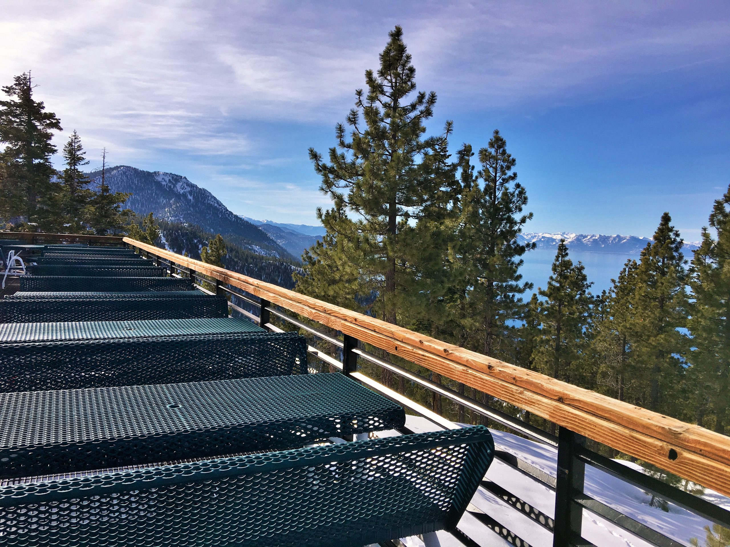 山の中腹裾にあるこのSnowflake Lodgeはこちらもロッジといっても宿泊施設ではなくカフェテリア兼休憩所でここからの眺望はそれはそれは素晴らしい紺碧のタホ湖ビュー!スキーはともかく、この景色を見にだけにでも来たいとおもわせるレイクビューです。ここは朝はガラガラでしたがランチ時分は食事の購買は長蛇の列&テーブルは争奪戦、とかなり混む激戦区となります。週末はここでBBQランチも販売してます。