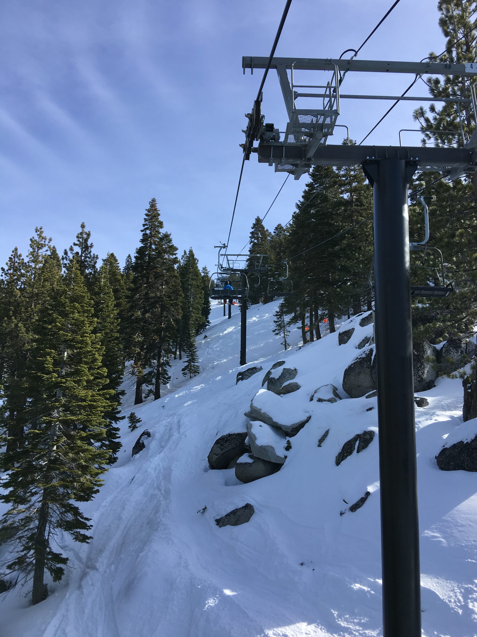 今冬は積雪が例年より多く、リノ・タホ―周辺のスキー場はどこもここ数年来久々の抜群のゲレンデ・コンディション。お天気と気温がマイルドな日を選び Diamond Peak Ski Resort へ。リノからMt.Rose Hwyのシーニック・ドライブを経てタホ湖もチラ見しながらスキー場へ。結構な降雪があった日から5日を経ていて道路はチェーン規制もなくクリアで安心ドライブ。リノ市内から小一時間もかからないでした。