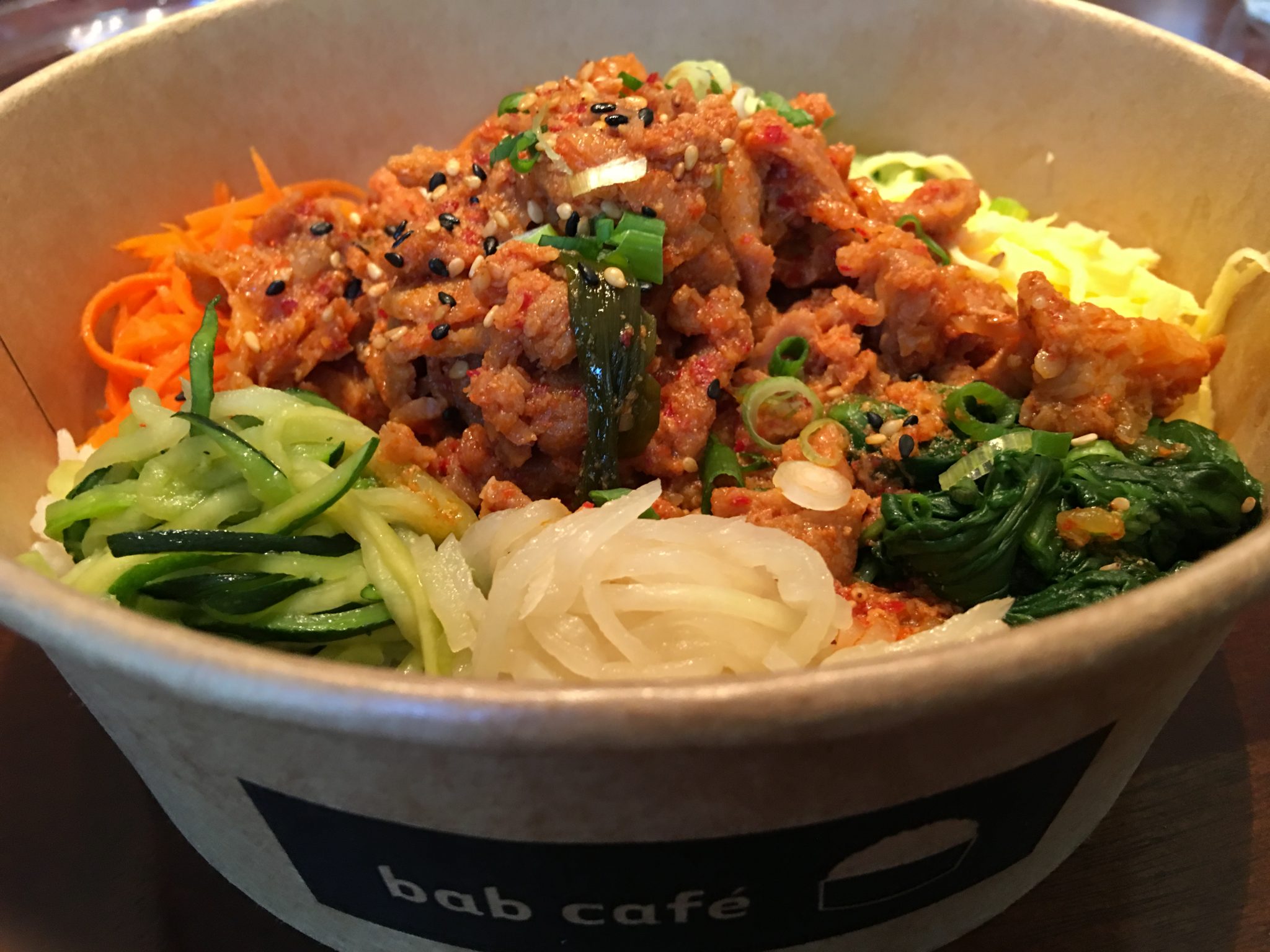 UNR卒業生が韓国ソウルでオープンした同名のビビンバのTO GO店の海外初進出がここリノに! お肉はブルゴギ(ビーフ)、スパイシーポーク、スパイシーチキンから選んで注文します。キムチ炒飯もなかなか。ご飯ものにはお味噌汁付きで嬉しい。
