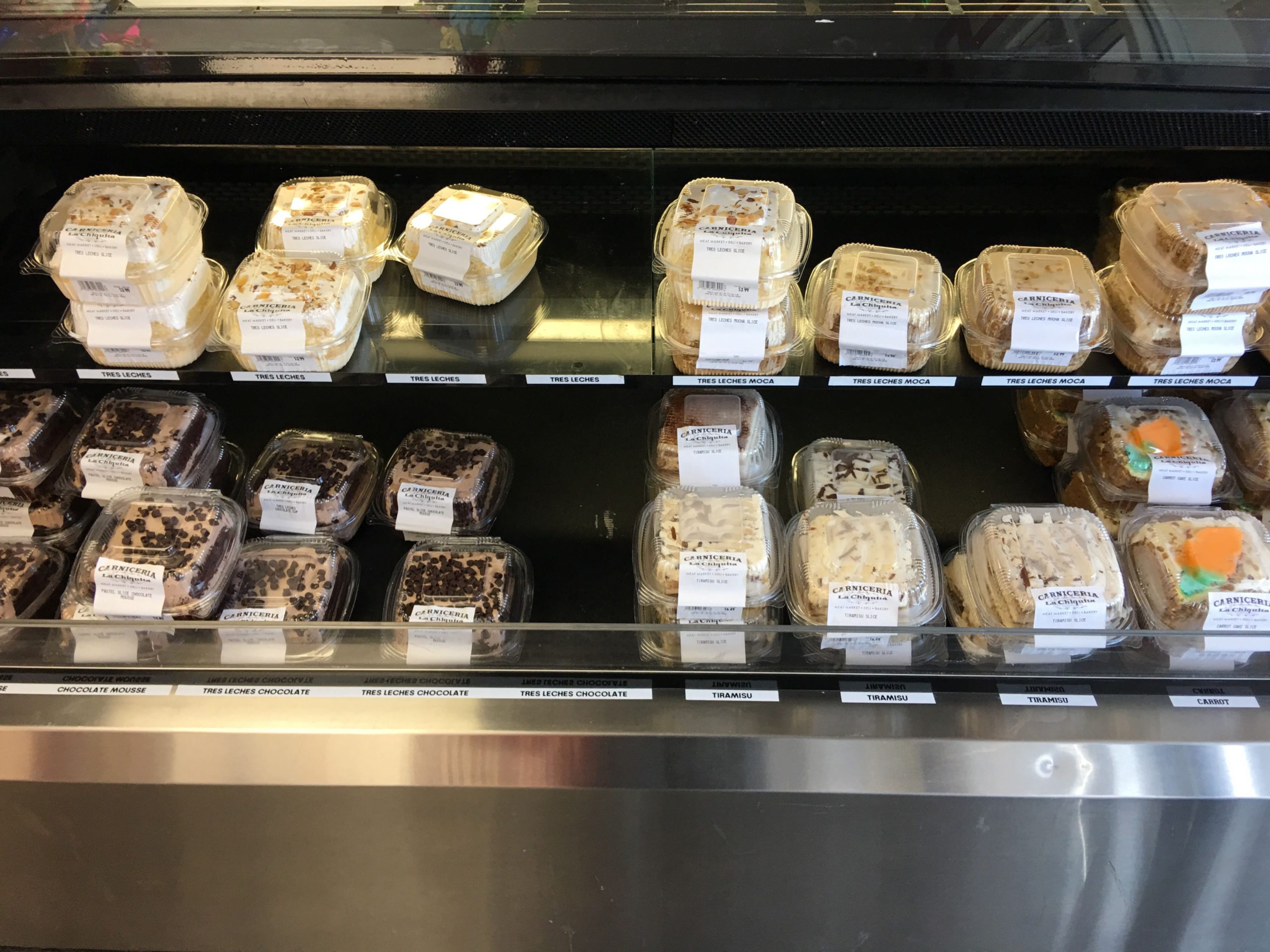 Tres Lechesケーキ、オリジナルとチョコ味。3種(Tres)のミルク(Leches)を使ったラテンアメリカ定番のミルク(練乳)漬けバターケーキ。ラテン・スイーツの割には意外と糖度は高くなく、しっとりしてて、かつ食感軽く、とーっても美味しい!  アメリカのスーパーマーケットとかで売ってるザ・USAなケーキより断然こっちが美味しく、やみつきスイーツリストに入ってます!