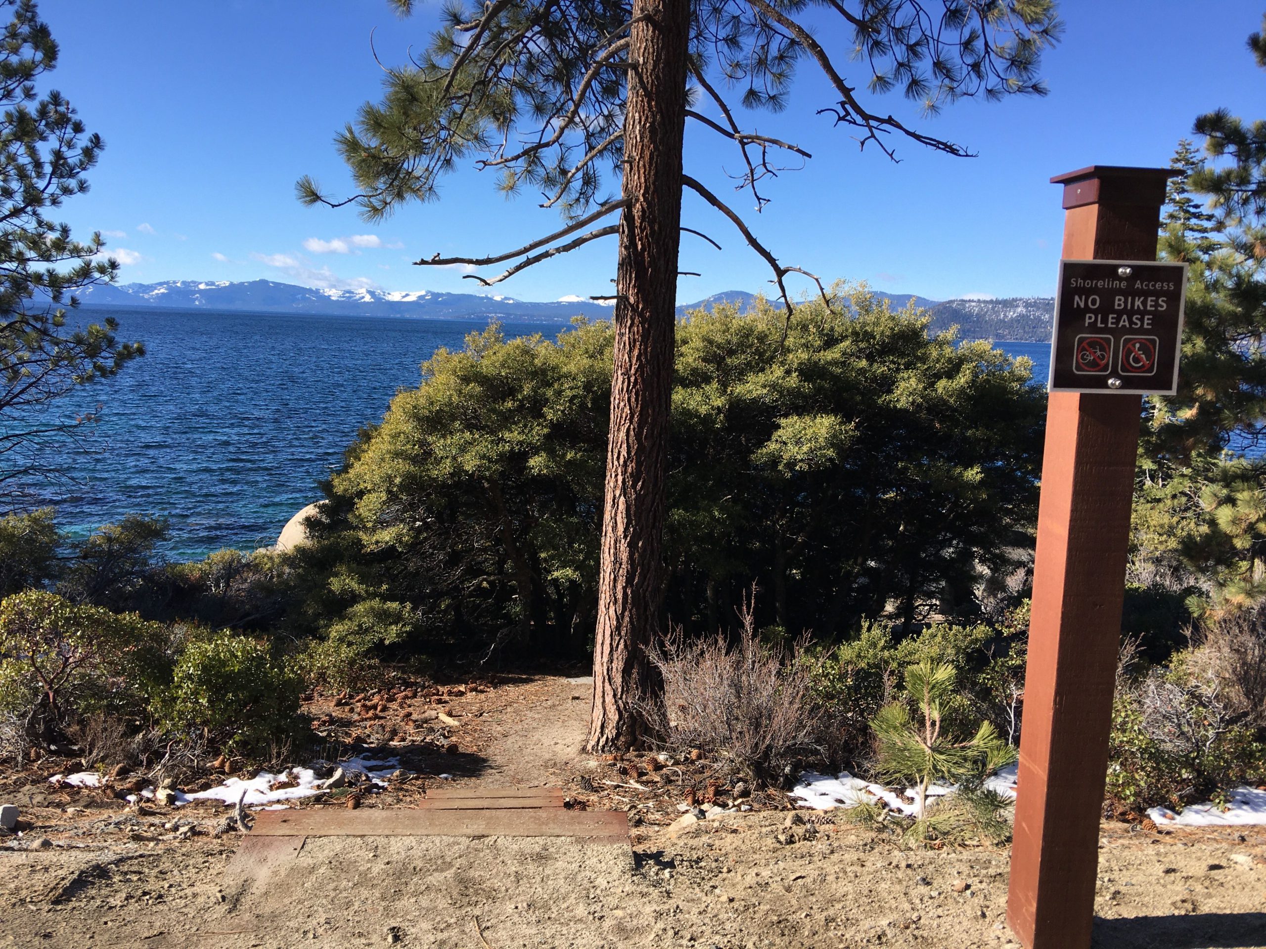 昨夏(2019年6月)に満を持して開通した Tahoe East Shore Trail は、タホ湖の住民やファンにとって積年の夢であった湖岸沿いの安全で風光明媚な遊歩道兼バイク・トレイル。総工費は約12ミリオン・ドル(約13億円)。2019年11月にはジャスティン・ビーバー(25才)がプライベートでこの遊歩道を訪れた際に「お祈りと瞑想をしに来たんだ。」とインスタグラムに投稿したことで、この遊歩道、一躍全国区になってもいます。オープンから夏季、そしてビーバー効果があった際の混雑を避けてるうちに時間が経っちゃいましたが、落ち着いたであろう2020年1月にようやく訪れて来ました!
